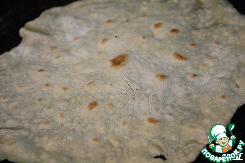 ) Нагреваем сковороду и обжариваем с двух сторон на сухой сковороде лаваши.