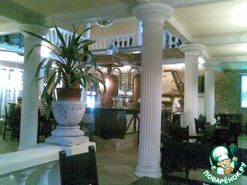 А пиво варится в пивоварне и тут же при ней пивной ресторан...очень калоритный зал, много каких-то баков и трубочек..интересно..