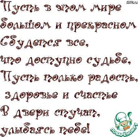 Пyсть жизнь твоя бyдет пpекpасна, я счастья желаю тебе!!!