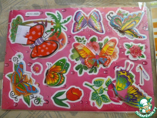 А вот еще наклейки с бабочками, объемные.. Наклейки в первую очередь были приклеены на стену возле нашей кровати...