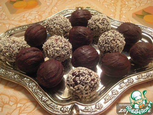 С одной начинкой орешки оставить просто в шоколаде, а другие обвалять в кокосовой стружке пока шоколад не остыл.
