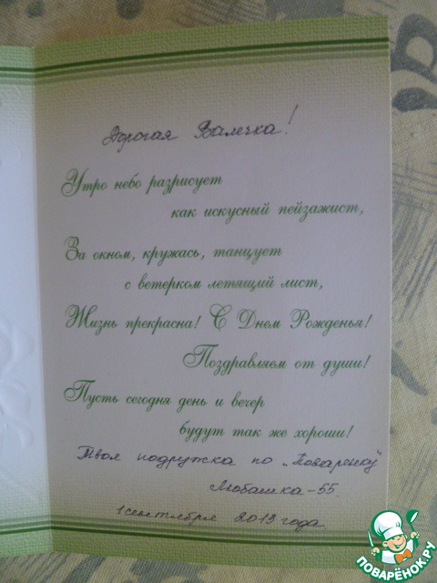 Валечка, поздравляю!!!! Любаша молодец, так тебя порадовала и дочу твою! День рождения продолжается
