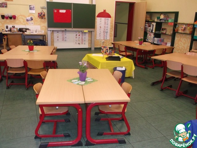 класс очень интересный, действительно очень далеко напоминает наши классы с партами в ряд, мне больше на садик похоже