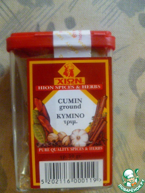 Желатин с приправами для заливного, приправа весенняя и тмин.