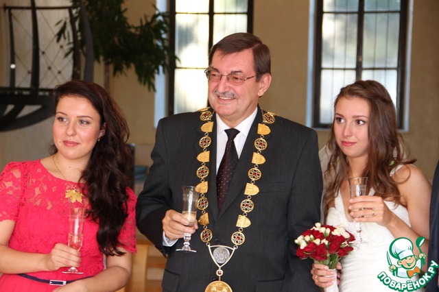 Сама церемония проходила в старой ратуше на Староместской площади. Кто там был, возможно поднимались на смотровую площадку башни -так вот, это действующее здание, где расписывают молодоженов и провести церемонию именно там хотят очень многие. Церемонию проводил действующий депутат местного собрания, что нас немного удивило. Веселый дядька, потом пил шампанское со всеми нами)) Хорошая у человека работа))