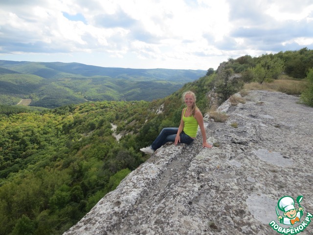 И вот, мы на вершине!.. нет, не так. Ура! Мы на вершине! - снова не то... сложно подобрать слова, когда это эмоции и чувства... Это случилось! Мечта четырехлетней выдержки сбылась! Мы взобрались на гору не самым стандартным путём, у нас есть свобода, куда идти, что изучать, где быть; нам не ставят ограничений во времени - мы сами вольны решать эти все вопросы! Мы предпочли самостоятельное восхождение на Мангуп-Кале и теперь пользуемся всеми привилегиями своего выбора. В конце концов, мы после двухчасового пешего путешествия сделали привал и, наслаждаясь прекраснейшими видами на горы и низинки, леса и поля, поедали припасённые бутерброды.