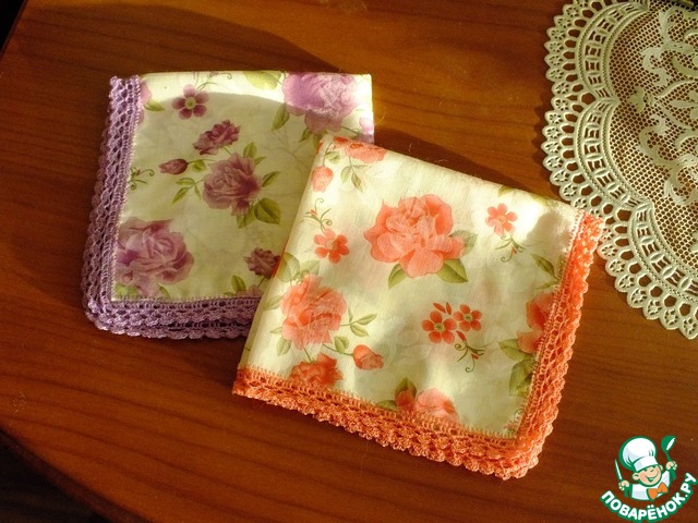 Салфеточки - это носовые платочки из тонкого поплина, обвязанные мулине в 1 нить.