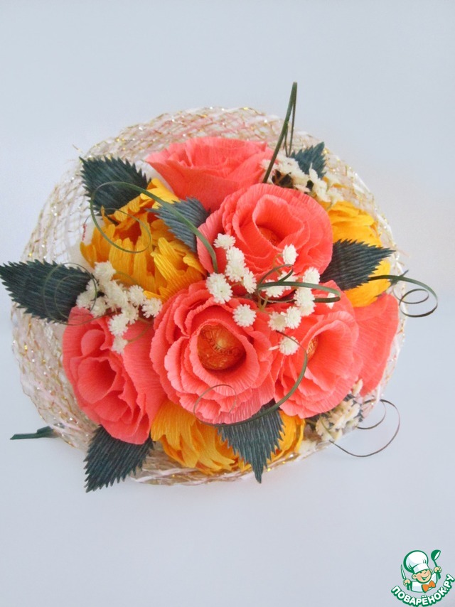 Внутри этой цветочной композиции находится плитка шоколада, которая была подарена нашей Тонечке Лианда.