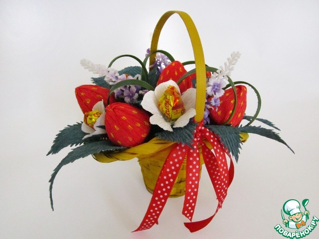 Внутри этой цветочной композиции находится плитка шоколада, которая была подарена нашей Тонечке Лианда.