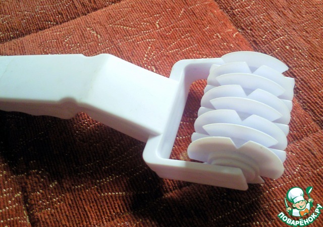 Давно хотела приобрести валик для формирования из теста сетки (не знаю даже как правильно он называется). но то он мне упорно не встречался, а в редкие наши с ним встречи в магазинах его цена не очень радовала. А тут случайно увидела на раскладке среди китайских товаров, цена, как понимаете была очень приемлемая, и я не смогла пройти мимо. Естественно, что мне сразу же захотелось пустить его в дело да и рецептик подходящий имелся