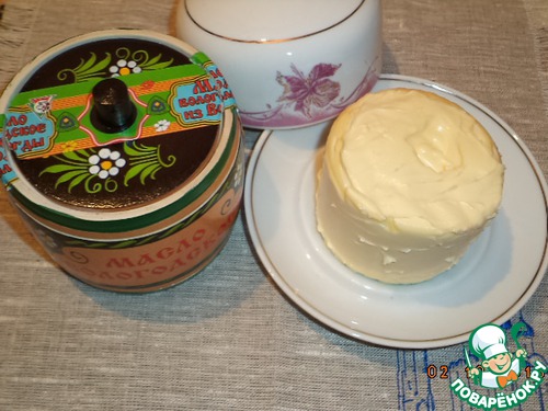 А это совершенно волшебное настоящее вологодское масло!!! Уже попробовали - восхитительный вкус! Маслёнка у меня только маловата под такой гостинчик!)))