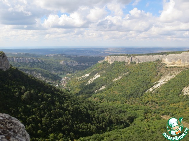 Вид с Мангуп-Кале на село Ходжа-Сала и, конечно, на соседние горы.