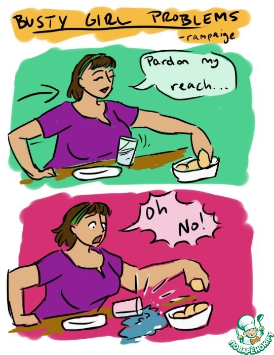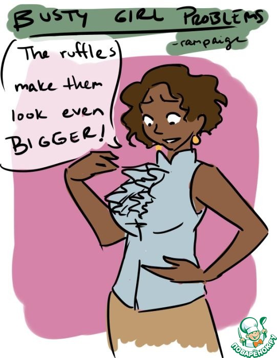 А вот вам еще проблема большой груди - покупка одежды! В плечах и поясе сидит, а на груди не сходится