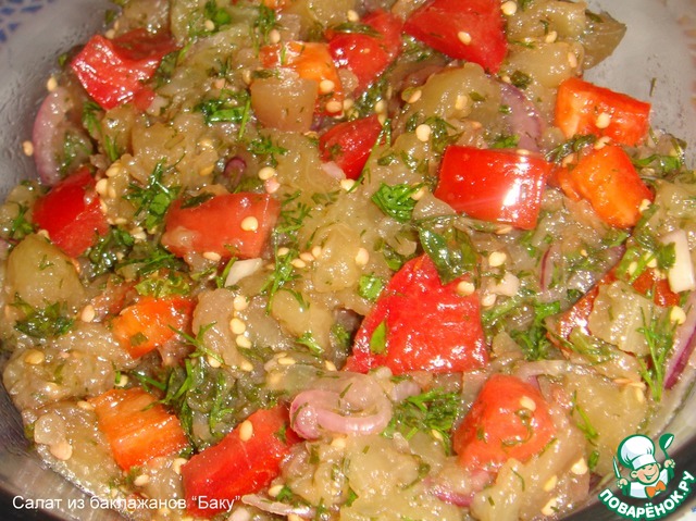 Салат из баклажанов «Баку» по рецепту Машеньки Марья Криворучко - прекрасная,ароматная закуска!https://www.povarenok.ru/recipes/show/78644/