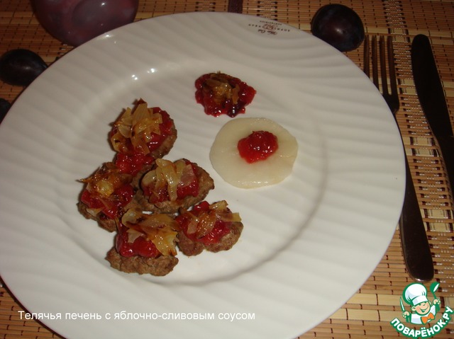 Телячья печень с яблочно-сливовым соусом по рецепту Светули avani вызвала у нас такой восторг!Очень изысканное блюдо!Не в одном ресторане ничего подобного не пробовала!Очень рекомендую приготовить!