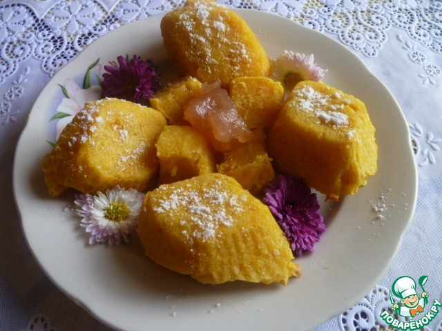 Вам понадобится: 1/4 средней тыквы, 2.5 ст.л. сметаны, 2 яйца, 2-3 ст.л. сахара, 3 ст.л. муки.