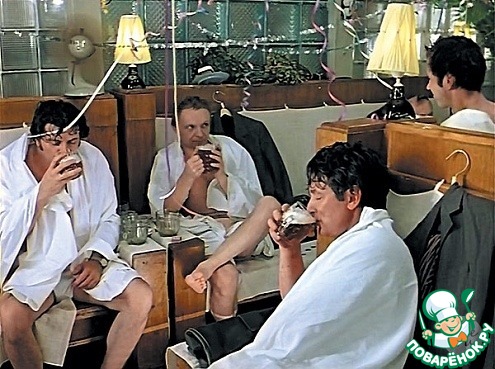 На съемках всеми любимой новогодней картины «Ирония судьбы, или С легким паром!» крепкий алкоголь находился под запретом. На «Мосфильме», в 600-метровом павильоне, выстроили квартиру Нади (Барбара Брыльска) — «32 квадратных метра полезной площади». Там же, а не в Сандунах, вопреки расхожему мнению, снимали сцену дружеского застолья в бане, после которого Женя Лукашин (Андрей Мягков) случайно улетел в Ленинград. «Из настоящей бани нам привезли только две бочки пива и пальмы в кадках», — вспоминает Александр Ширвиндт. А так как съемки этой сцены проводились ночью, в павильоне было холодно и, кроме того, у Александра Белявского случился день рождения, актеры решили схитрить. «Каждый из нас принес на площадку по бутылке сорокаградусной, — рассказывает Ширвиндт. — Мы заменили бутафорские бутылки настоящими и сложили их в портфель Жоре Буркову». После нескольких дублей Эльдар Александрович заметил, что актеры захмелели. Возмущенный режиссер остановил работу, а на следующий день, перед тем как начать пересъемку этой сцены, лично открыл все бутылки и понюхал, чтобы убедиться, что в них налита не водка, а обычная вода. Правда, при монтаже выяснилось, что Мягков, Бурков, Белявский и Ширвиндт органичнее выглядят именно в первом дубле — он и вошел в итоговый вариант фильма.