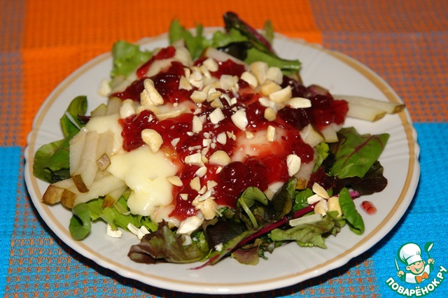 и очень вкусный Тёплый салат из груш и моцареллы с клюквенным соусом https://www.povarenok.ru/recipes/show/79549/