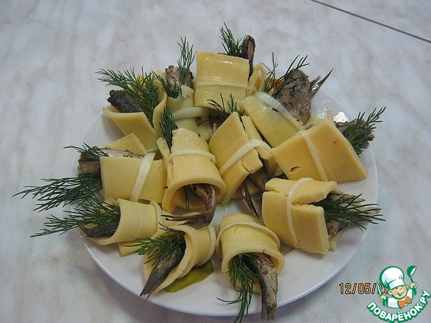 Шпроты+сыр - и зеленушка для диетичности...