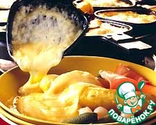 5Когда поверхность сыра расплавится, ножом соскрести его на картофель или просто на тарелку и повторить всё действо)))Можно расплавить сразу весь сыр в фондюшнице.