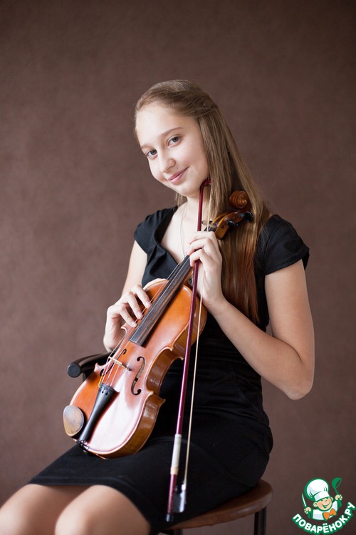 [Маня давно занимается в музыкальной школе, с этого сентября осваивает скрипку]