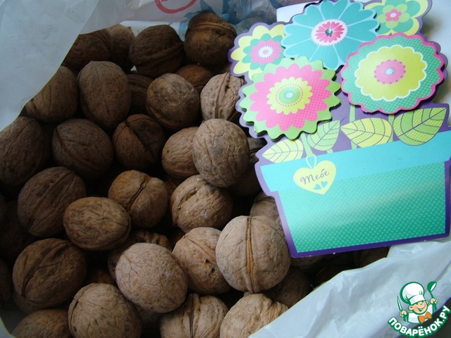 А это самое главное: Открыточка с ПИСЬМОМ, которое Олечка мне написала! Я думала в 21 веке уже никто не пишет письма и мне было просто безумно приятно читать это письмо! Я вспомнила свое детство, как переписывалась с подружками. Я это очень ценю, спасибо Олечка!!! И просто хит сезона - НАСТОЯЩИЕ южные орехи!!! У меня муж большой фанат орехов и сухофруктов. Он всегда покупает нечищенные - говорит чищенные обрабатывают. Но ТАКИХ, он сказал, никогда не пробовал. Сладкие и вкусные. За орехи он просил передать низкий поклон. так что передаю! А вообще мы очень любим вечером всей семьей трескать орехи. Папочка их колет и нам всем раздает. Теперь осенними вечерами будем нашу Олечку вспоминать. Так что если заикается - это мы, с благодарностью!!!