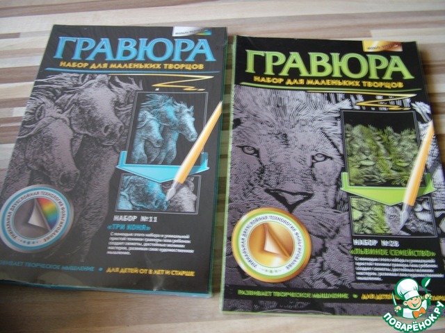 Олечка не забыла и про моих мальчишек. Они уже вовсю сидят, занимаются гравюрами. Я, к слову, такие в магазинах видела, но как-то не довелось купить. А тут оказывается такой интерес у ребят к этим вещам!