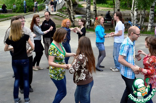Парные танцы на открытом воздухе. Более десятка пар и море позитива! Это было великолепно! Царила дружеская атмосфера, в том числе за счёт того, что обязательным условием было по каманде переходить к новым партнёрам. Вечером того дня от любимого я услышала самое удивительное и неожиданное предложение - начать заниматься парными социальными танцами!