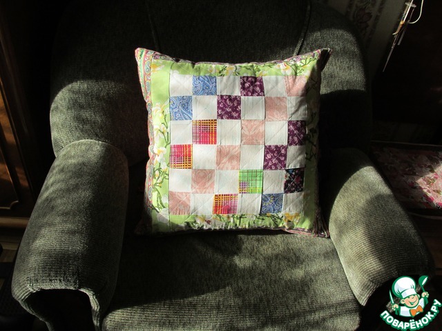 У меня на даче тоже есть подушечки типа лоскутных, только эти лоскутки связаны крючком (вязала, правда, нея , а мама). Тоже так уютно от этих мелочей, особенно на фоне деревянной обшивки стен, тоже как у Вас.