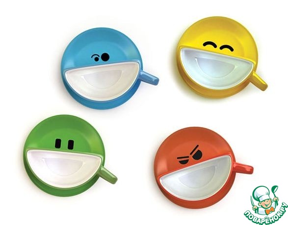 Смайлики превращаются в удобную тарелочку с чашечкой.