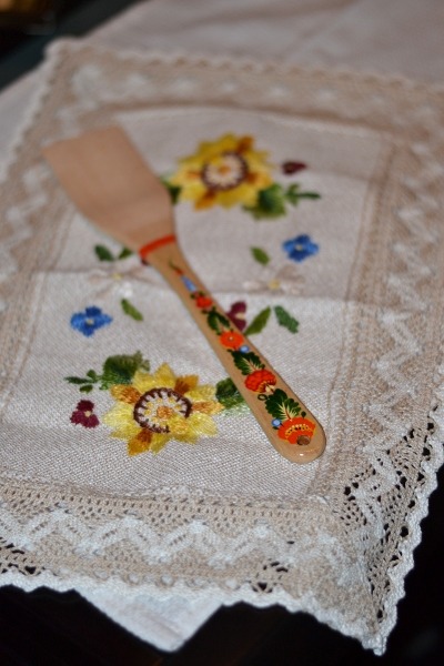 солонка, матрешка с зубочистками и лопатка. А также красивейшая салфетка, которая уже заняла свое место на столе.