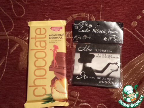 Ещё шоколад с ананасом и симпатичный магнит со словами Коко Шанель!