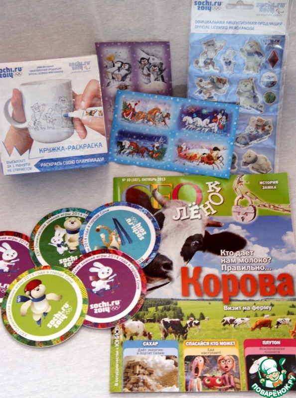 Ну и дальше... Настя оЧуЧмевала от счастия, поскольку сувениры .... олимпийские, очень интересные и уникальные, а ещё знакомый ж-л "Геолёнок":