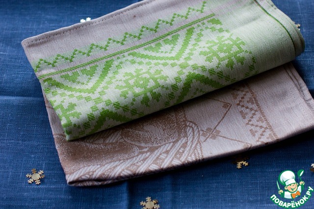 - Замечательное льняное полотенце, моя слабость, обожаю подобные вещи! Красивый, очень нежный узор, сочетание серого, бежевого и зеленого - прекрасный фон!