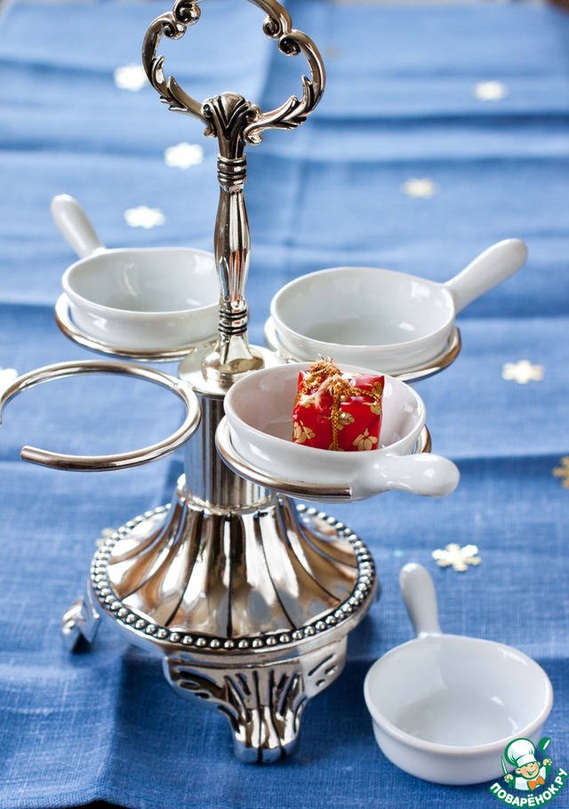 - А от подарка, который предназначается мне, дыхание перехватило - вот такая шикарная соусница! Однозначно будет стоять на новогоднем столе с горчицей, хреном, аджикой и ... пока не знаю, каким будет четвертый соус. ))) Скорее всего, кисло-сладкий какой-нибудь.