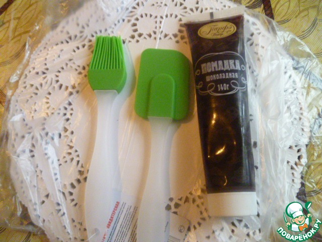 Помадка шоколадная, силиконовые лопатка и кисточка.
