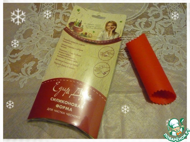 А это замечательная помощница - силиконовая форма для чистки чеснока с рецептом от Юлии Высоцкой! Никогда такой не видела - супер!