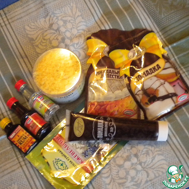 А вот это для творчества! Маленькие бутылочки с ароматизаторами (ром и миндаль), помадка белая и шоколадная, миндальные лепестки и ягоды можжевельника (водочку на них настою