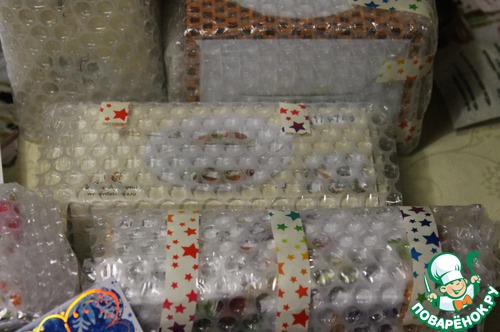 Вот так все было тчательно упаковано. И ведь даже скотч с новогодней символикой. Леночка, какая же ты молодец! Все прекрасно дошло, ничего не разбилось.