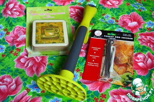 Замечательные помощники на кухне / набор подставок под горячее, толкушка и набор для мясных рулетов (шнуровка и спицы)/