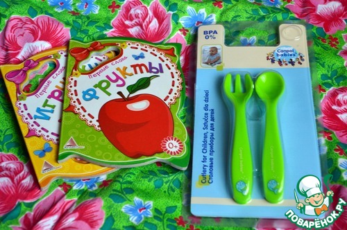А вот для деток подарки. Книжечки и очень красивый столовый набор для моей доченьки.