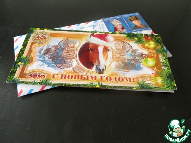 и красивым поздравлением с Новым годом от нашего чудесного поваренка Женечки JeSeKi! Так неожиданно и приятно! Где Женя узнала мой адрес - загадка природы! Кто-то меня явно "сдал"!