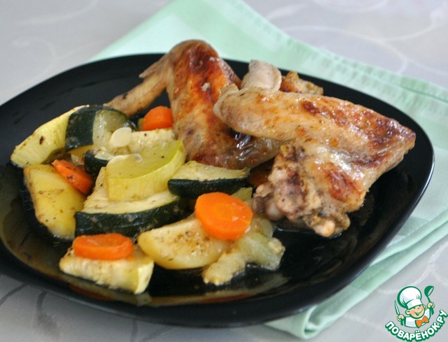 Крылышки куриные с овощами