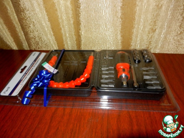 Это наборчик для мужа, отвёртка с насадками и удлинителем. Светуль, огромное от него спасибище!! Очень нужная штука!!