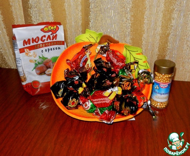 там шоколадные капли, миндальные лепестки и гелевые карандашики