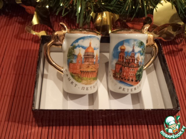 А это - невообразимый набор для специй, с золотыми ручечками и макушками, С надписью "Санкт-Петербург" по-русски и по-английски! Чудесный набор!!!