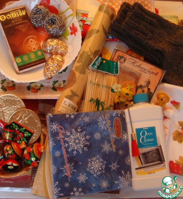 Новосибирской шоколадной фабрики.Мамуля обожает салфеточки из микрофибры и вафельные полотенчики!И губочка мамулю очень заинтересовала.И с подставкой для ложки Ренаша угадала.Мамочка как раз хотела свою старенькую поменять...