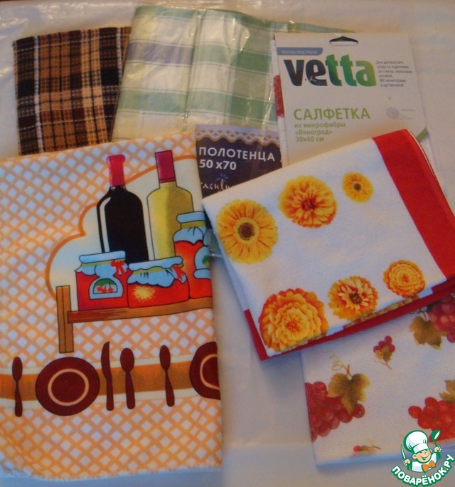Чудесные полотенца,такие разнообразные!И,главное,тона,которые я просто обожаю!В клеточку, на белом фоне и с цветочками!Льняные очень люблю!Вафельные - чудо,а махровые до того мягенькие....А салфеточки из микрофибры очень удобные и нужные!А вообще,полотенца - это моя слабость!Люблю,чтобы их было много,они у меня в таком ходу..
