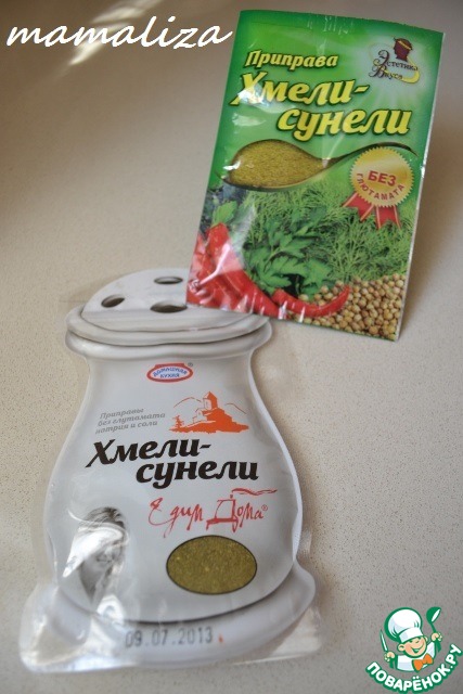 А еще моя дорогая Галочка подарила мне хмели-сунели, которые я никак не могла здесь приобрести. Теперь у меня 2 пакетика этих специй и я смогу со спокойной душой приступить к воспроизведению нескольких рецептов, которые уже давно ждут своего часа!