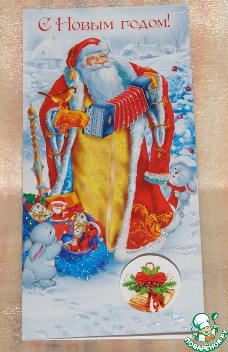 открыточка от Светланы Владимировны, такой задорный Дедушка мороз.